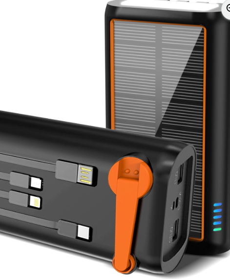 ReeZar Power Bank Solar Portable Charger 61200mAh Built in Hand Crank Built in 4 Cables 7 Outputs 15W Fast Charging for All Mobile Devices SOS/Strobe LED Flash Light